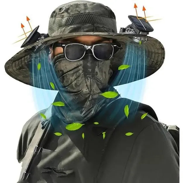 2025 New Wide Brim Solar Fan Outdoor Fishing Hat-Solar & USB Charging